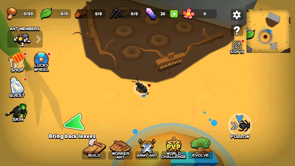 2、资源,维护蚁后,培育蚁蛹,与其他玩家抢夺资源,不断发展壮大自己。