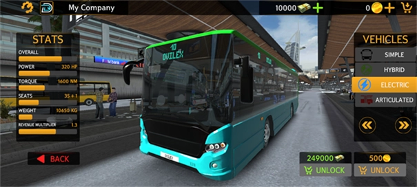 5、选择一辆最适合自己的车辆,游戏内提供多种常规/柴油、混合动力、电动和铰接式巴士可供选择,每种公交车的属性都不相同。