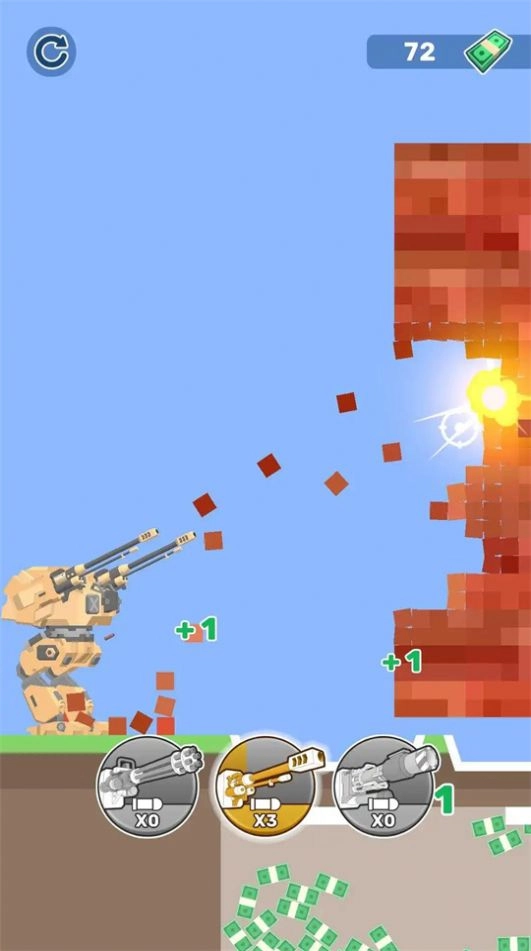 玩家们乘坐自己的机甲一起在城市中穿梭。机甲城里有许多邪恶势力。发挥自己的正义一起营救被困人员让他们为之欢呼。游戏最下方会有一些数字这是你的炮弹的数量它们的威力也不同。
