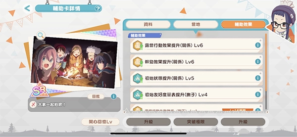 这里的服装作用十分关键,在摇曳露营游戏中是主要的属性增长关键。