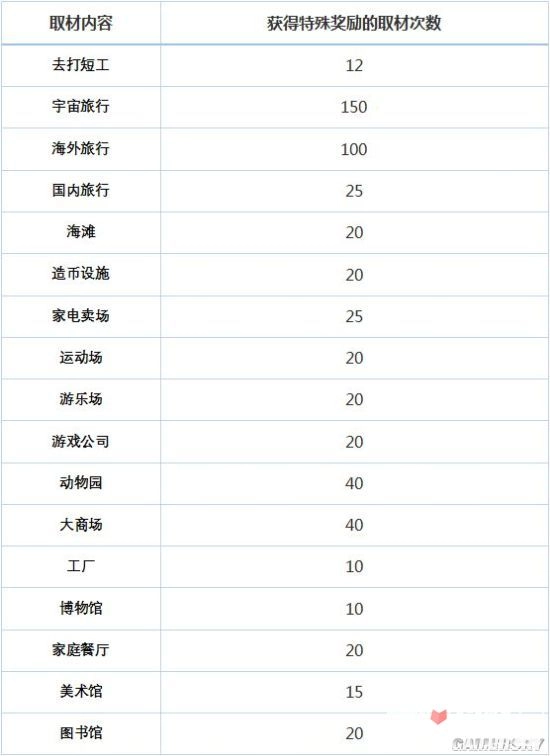 可以看出表中选哪个要获得特殊奖励,取材的次数也都有变化的,所以建议大家能够更快的获得奖励,就时刻观察取材的地点,避免重复浪费时间。