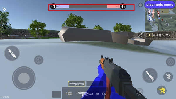 状态——屏幕左下方显示玩家的血量值以及玩家弹夹的情况。