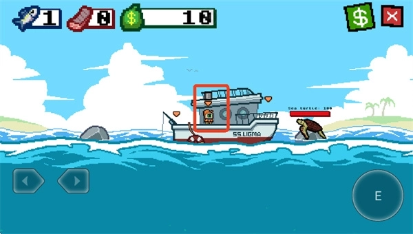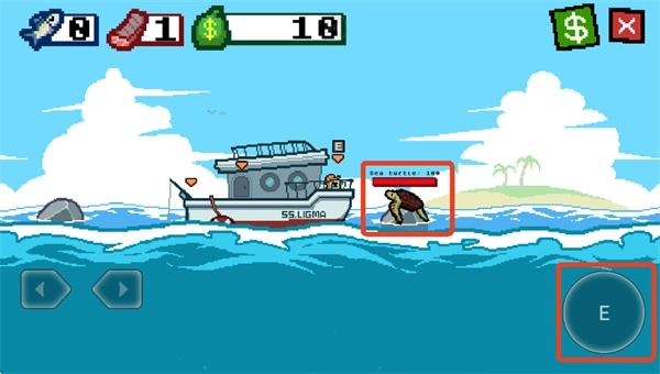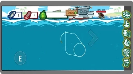 2、通过右下角的按键来调整鱼钩的方向,操控鱼钩撞击鱼类以造成伤害,当伤害累积到一定程度时,即可将鱼钓起。