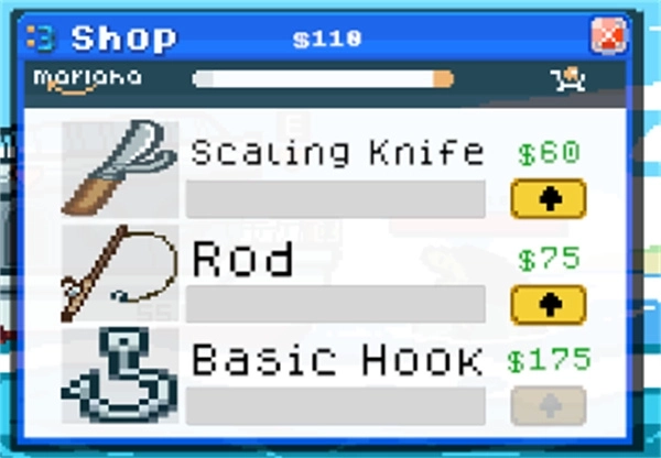 6、点击右上角的按钮进入商店,可购买并升级你的刀、钓鱼线和鱼钩。