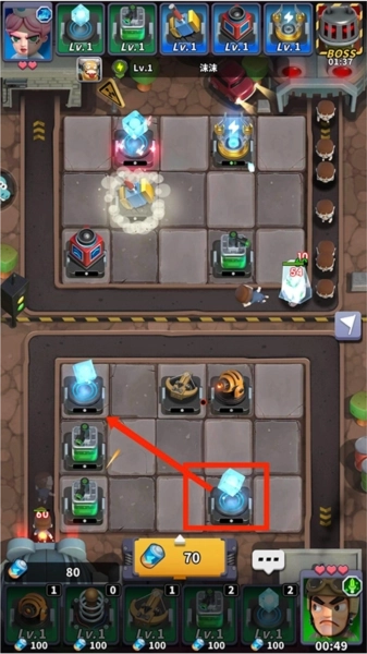 第二步:当格子被填满后,把等级较低的炮塔进行合成操作。这一做法不仅能增强单个炮塔的攻击能力,还能为场地腾出更多格子空间,以便后续放置新的炮塔。