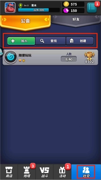 9、进入【社交界面】后,玩家能够在此加入、搜索或创建工会,也可以进行添加好友的操作,以上便是僵尸风暴的玩法介绍。