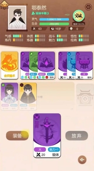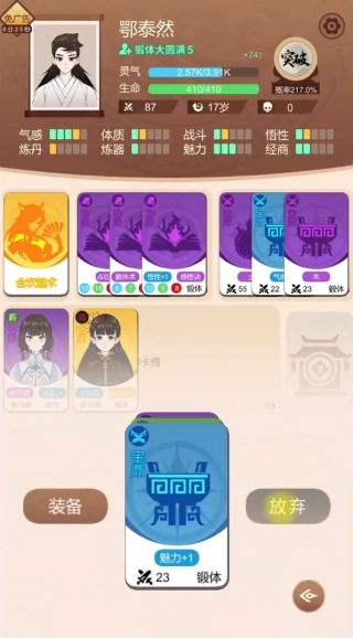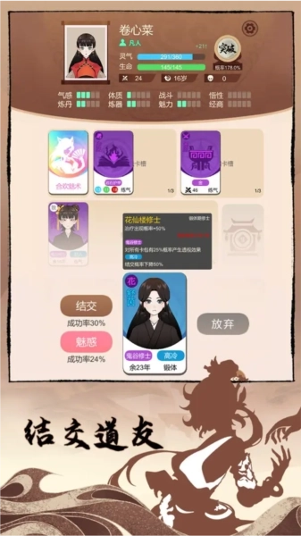 1、优先选取基础功法卡,筑牢灵根根基,增强修炼进程中的效率与灵气储纳能力。