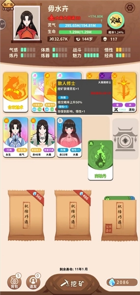 游戏世界里处处是随机的变数,家族的兴衰轨迹会因为形形色色的意外事件而愈发跌宕。像是偶然邂逅修为高深的修仙者,亦或是家族内部成员间的冲突与隔阂,这类事件都将左右家族的未来走向。