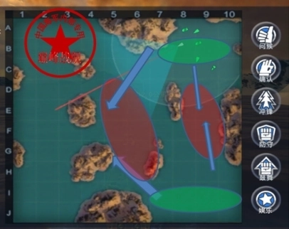 死斗模式不存在据点,因此不建议朝据点方向移动,驱逐舰可以按照蓝色箭头指示的方向前进,借助地图中间的岛屿来掩护自己。在战局尚未清晰的情况下,战列舰最好不要贸然前进。由于地图面积不大,也不太建议大家全部聚集在一起行动。