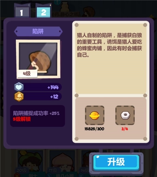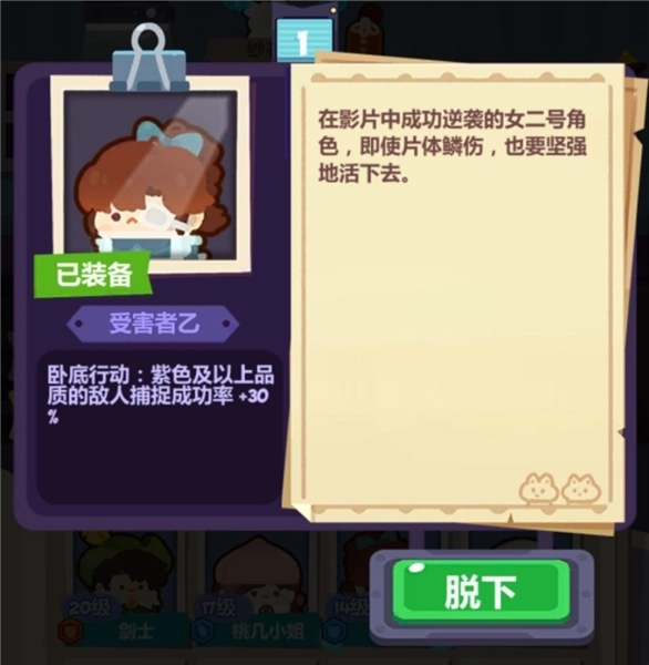 3、前期可以直接培养冒险组(魔法师、弓箭手、剑士),再搭配双猫和火枪手(第二天签到会赠送的角色)。双猫先直接升到20级,解锁第二个装备对讲机,之后同步推进解锁呜呜冒险家皮肤的任务。(漆漆皮肤不用急于解锁,等呜呜的皮肤解锁后,双猫的强度基本就足够了,前期的战斗需求基本不用再担心)