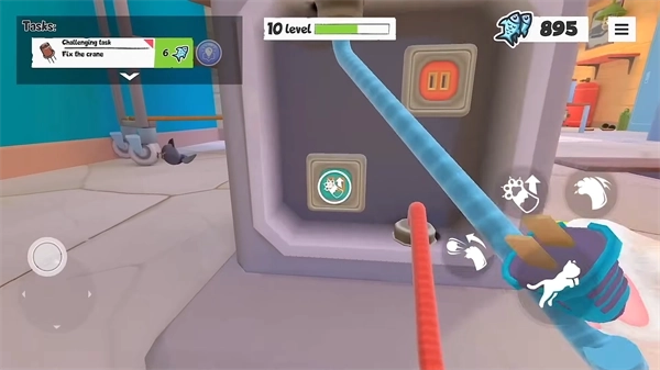 2、游戏左下角可控制猫咪前进后退,右下角则能进行跳跃、挥爪等操作;