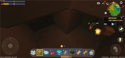 5、找到所需材料后,把游戏视角切换到石头的位置,接着长按石头,系统就会自动完成材料的获取操作。