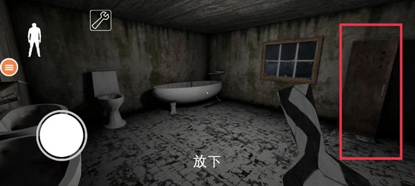 4、当你离开房间后,会看到左右两侧各有一扇紧闭的房门,右侧那扇是浴室,左侧的则是卧室,奶奶就在卧室里,你要多加小心。