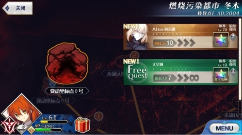 在主界面右侧设有若干关卡按钮,玩家可通过这些按钮进入不同的特异点,进而选择不同关卡参与战斗。每个关卡点首次达成完全通关条件后,都会向各位Master发放丰厚奖励,快带上你的Servant投身战斗吧!