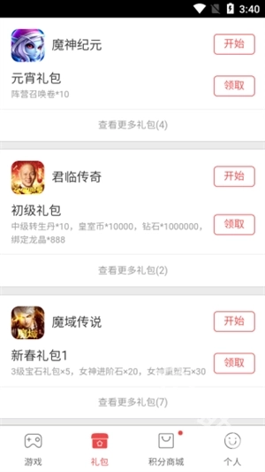 3、在礼包页面,你可以了解各类游戏,随时领取礼包,还能试玩各类游戏。