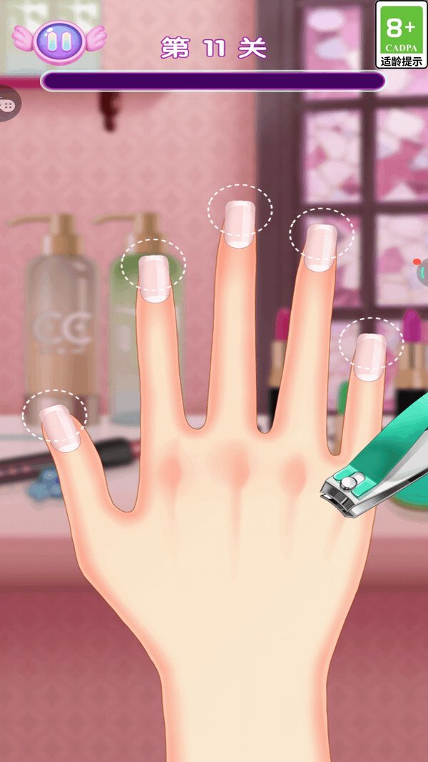 1. 自定义美甲:玩家能够为小公主挑选各式各样的美甲颜色、装饰品与图案,从而打造出独具个性的美甲效果。