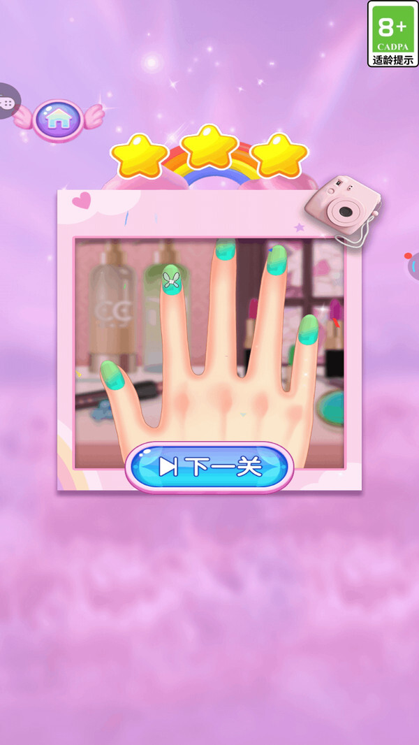 3. 解锁更多内容:随着游戏进程的推进,会有更多款式的美甲装饰品与图案逐步解锁,为你的小公主提供更丰富的选择空间。