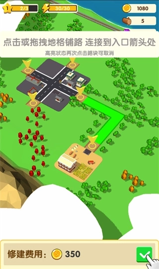5、玩家需要点击或者拖拽来进行铺路;
