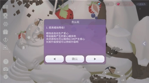 蜡烛能自动生成爱心,等级越高生成的爱心数量就越多,即便关闭游戏也能保持8小时的爱心生成状态,长按升级按钮还能实现持续升级呢。