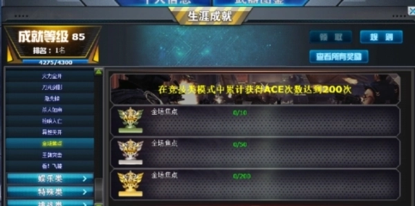 成就条件:段位赛匹配频道累计达成200次ACE,且该数据同步计入ACE榜