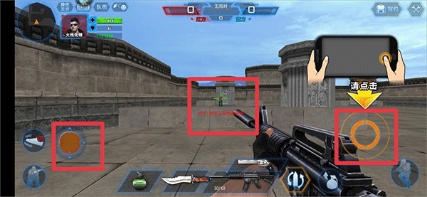 2、游戏里敌人出现时,按住左侧按钮控制角色移动,右侧射击按钮可滑动视角;当准心对准敌人后,角色会自动射击并消灭敌人。