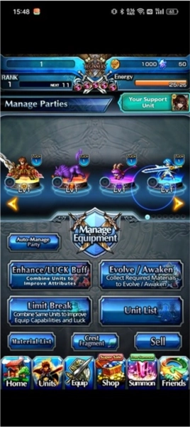 游戏里的装备池里没什么好东西,不太建议去抽,而且每天本来就有一次免费抽的机会。不管是经常氪金的玩家还是不花钱的零氪党,主要的装备获取途径都是靠刷活动和打BOSS,而且活动给的装备通常是最强力的,因为它们带有独特的被动效果。竞技场只要赢够一定场次就会赠送装备,会直接给一套涵盖物攻、魔攻、防御、回血、辅助这几个类型的五星装备。把主线和支线任务都通关后能拿到装备配方,玩家可以自己动手制作装备,但自己造的装备基本都没什么用,也就是前期用来过渡一下而已。
