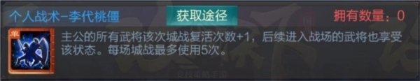 战术思路:无论是进攻敌方目标还是防守我方城池,该战术都适用。每个武将增加一次复活机会,就意味着多一次参与战斗的可能。但要注意,此战术的效果仅在当前城战中有效,城战结束后效果便会失效。所以,若作为进攻方去攻打关隘或县城,其实可以通过停战来重置武将的复活次数,不一定非要使用该道具。