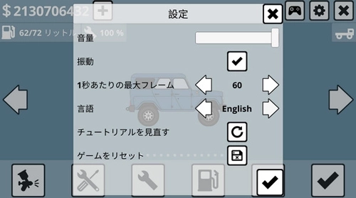 2、先打开迷你卡车司机游戏,找到右上角的齿轮状设置图标,点击进去调整语言。这款游戏支持八种语言,可惜没有中文选项,那就调成英语吧!