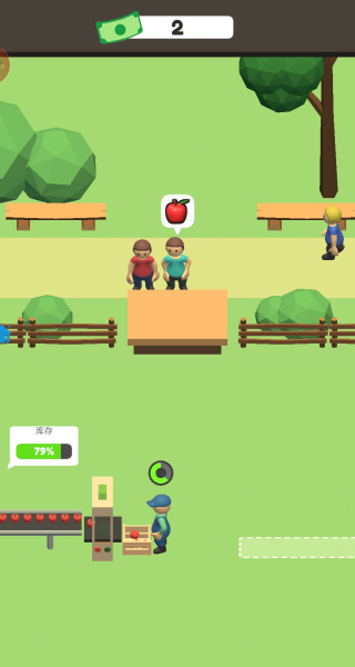 1、核心玩法以资源转化为核心,玩家需先前往果园采摘水果,随后在摊位进行售卖以获得金钱,从而构建起原料到收益的基础循环。