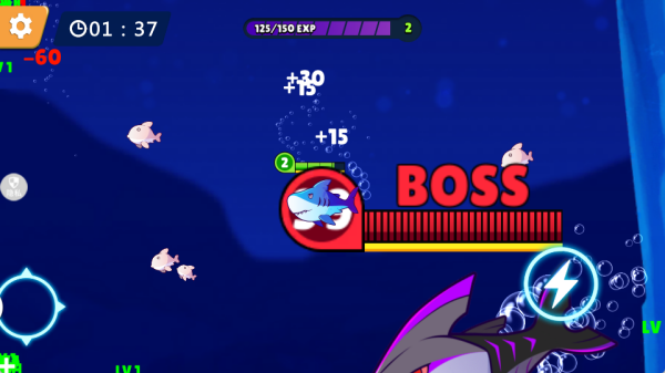 2、在有限时间里快速提升鲨鱼的能力,持续尝试新的吞噬策略,更快发现更多猎物,顺利实现进化。