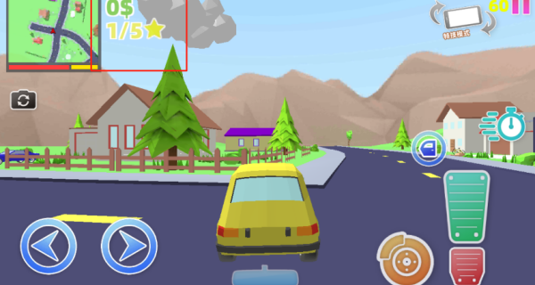 2、想体验驾驶?靠近汽车,轻点一下就能完成上下车操作。绿色按键用于加速,红色按键控制倒挡,橙色按键负责刹车,操作逻辑非常简单直观。