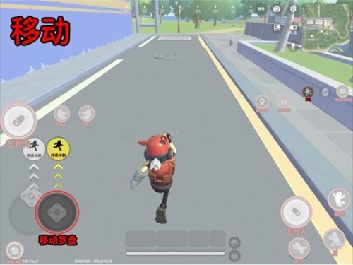 通过拖动「摇杆按钮/移动罗盘」的上下左右方向来实现移动;按住该控件并划动至「持续冲刺」黄色指示灯亮起后松手,即可锁定自动奔跑状态,此效果与点击右侧的「奔跑按钮」完全一致。