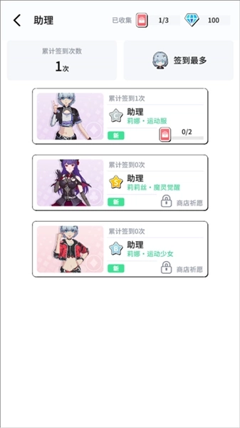 3、软件界面设计十分简约,助理形象能在助理界面随时更换,无论是短发造型、长发萝莉风格还是长腿御姐类型,你都可以自由选择获取。