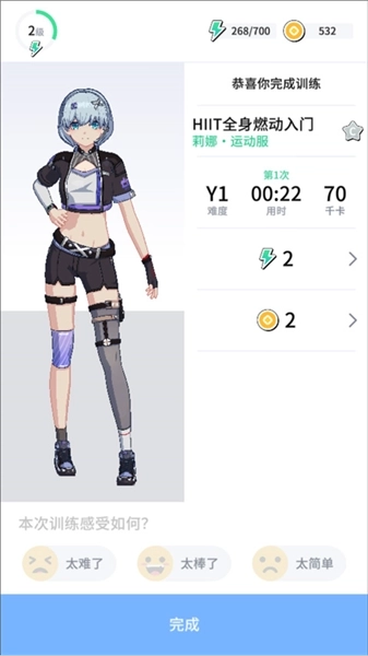 2、这款健身软件采用独特模式,对于喜爱二次元的用户而言,能够起到不错的激励效果。