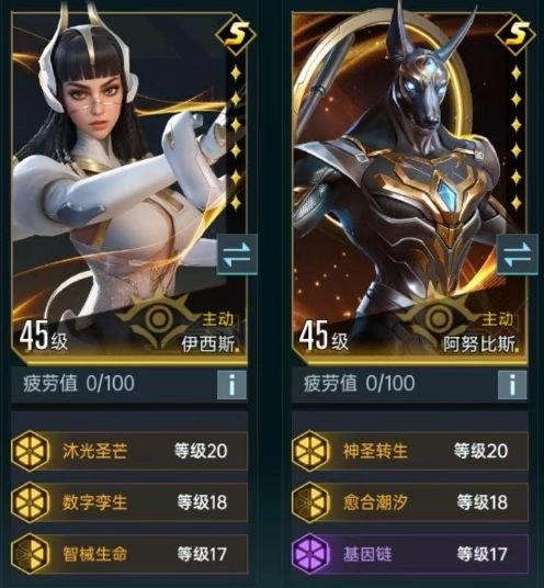 阿努比斯+伊西斯治疗体系,治疗能力恐怖,战场生存核心,只要他不倒下你的其他队伍很难倒下(此处为内测配置,基因链可以调整为战场老兵)。