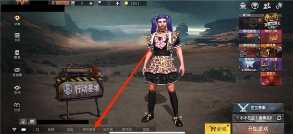 1、进入游戏大厅,点击屏幕下方的【开区服务】。