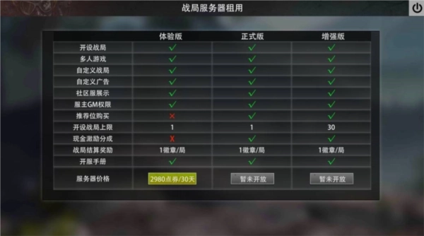 4、购买成功后,可通过大厅下方的【开区服务】入口进入设置界面。