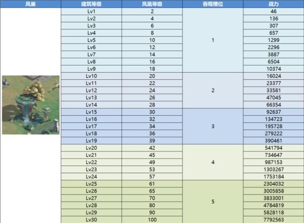 『凤巢』能够用于凤凰的培养与升星,经培养的凤凰能为战斗增添额外的支援加成效果。指挥官可借助升级凤巢建筑,来提高凤凰的等级并增加吞噬槽位的数量。