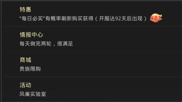 除了吞噬巨兽外,万能因子和稀有因子还能通过以下途径获取:一是在“特惠-礼包”中购买礼包(该功能需开服满92天解锁);二是参与“凤巢实验室”活动。此外,稀有因子还有一定概率在情报中心产出。