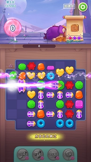 4、要设法制造出特效。一旦有了特效,就优先使用特效,这样才不会浪费步数,还能消除更多糖果,从而达成三星的目标。
