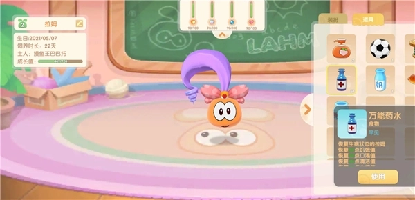 5、普通拉姆要等浇水后成长起来才能得到,超级拉姆买了之后直接找克劳就能立刻获取。养拉姆得留意别让那四个条的数值太低,比较省心的办法是每两天喂一瓶药水,玩具的话买一个就行,是能无限次使用的。