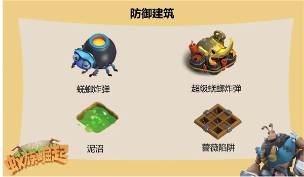 在合适的时机运用兵蚁与攻城蚁,并配合其他部队协同作战,能达到事半功倍的效果。攻城蚁发起进攻后,会优先锁定防御类建筑,这就可能导致后方一些小型建筑被遗漏,此时可以酌情投放1—2个小兵来清理这些残局。