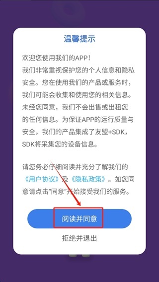 1. 开启游戏:点击初始界面的“阅读并同意”按钮,即可进入游戏。