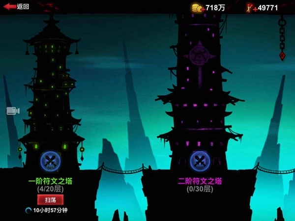 符文之塔属于爬塔类型的副本,共设有四座塔,分别是一阶塔(20层)、二阶塔(30层)、三阶塔(40层)和四阶塔(100层)。挑战高阶塔的前提是必须先通过低阶塔。当通关第四层后,扫荡功能会被解锁,每天玩家最多能使用火柴购买7次扫荡次数,以此快速获得英雄符文相关材料。