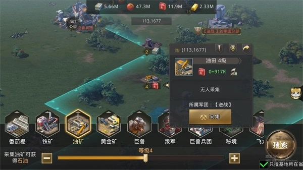 其次是大地图的资源采集环节,指挥官能够指挥巨兽与士兵前往大地图的采矿点开展资源收集工作。指挥官们可以在大地图上积极拓展领地,如此一来,可供采集的区域范围也会随之扩大哦~