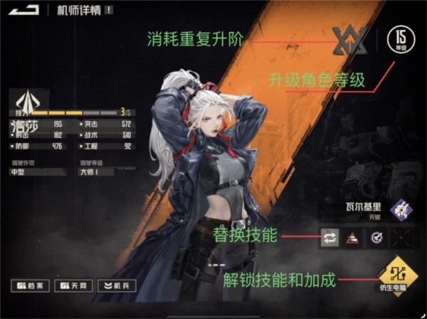4、机师养成拥有超高自由度。机师能够自由学习特技,还可以自主分配属性点数,再搭配上机师自身的王牌技能,每位玩家都能培养出专属于自己的、独一无二的王牌机师!