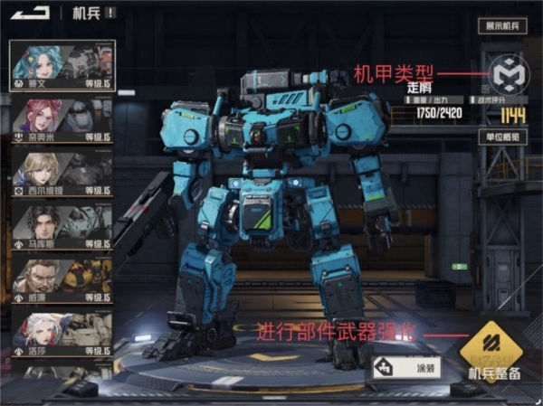 机兵右上角的图标可用于确认其类型,目前比较好用的角色主要是轻机兵和中机兵,重型机兵相对较少,大家在选择抽取部件时,可以根据自己队伍里的主力角色,优先抽取对应类型机兵的部件。
