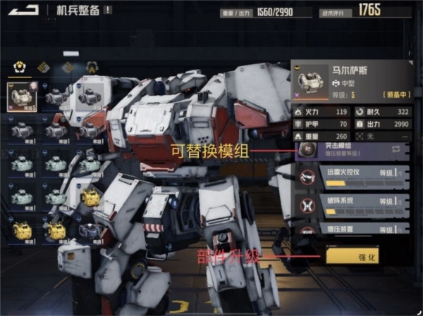 在机兵整备环节,主要进行的是部件、武器的升级操作,以及模组的替换工作。这里需要注意的是,橙色部件本身就自带一个替换格子,而紫色部件则需要通过升阶才能解锁替换格子。另外,选择部件时要重点关注其模组是否与机师的职业、武器相契合,不能仅仅因为部件是橙色品质就盲目装配,否则很容易造成被动效果的浪费。