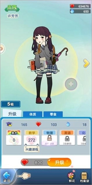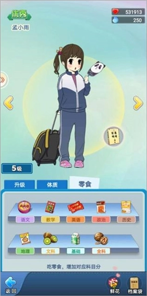 上学时的零食总是让人回味无穷,而在这里,零食又多了一项全新功能——吃不同的零食,能对应提升不同科目的分数。这些零食可以去小卖铺(在主页面点击走廊就能找到)购买,也能通过走访的方式获取。