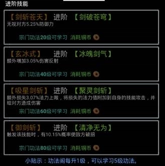 ③技能并非必须全部学习。部分技能在前期的实用性较低,完全可以从一开始就选择不学,这样能让其他技能获得更多释放的机会;而且后期学习技能会消耗大量铜币,少学一个技能就能节省不少资源。等后期宗门等级提升后,再依据实际需求去补学这些技能即可。至于前期具体不学哪一个,只要仔细研究一下技能介绍,自然就能明白。